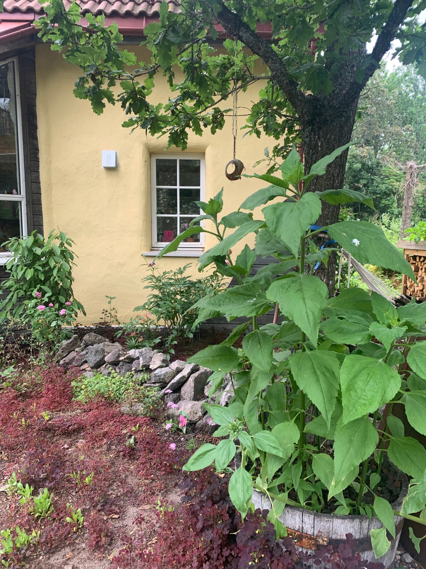 Halmhushagen leverer ingredienser til såpene og selvfølgelig inspirasjon. Blomster og frø kommer også fra hagen.